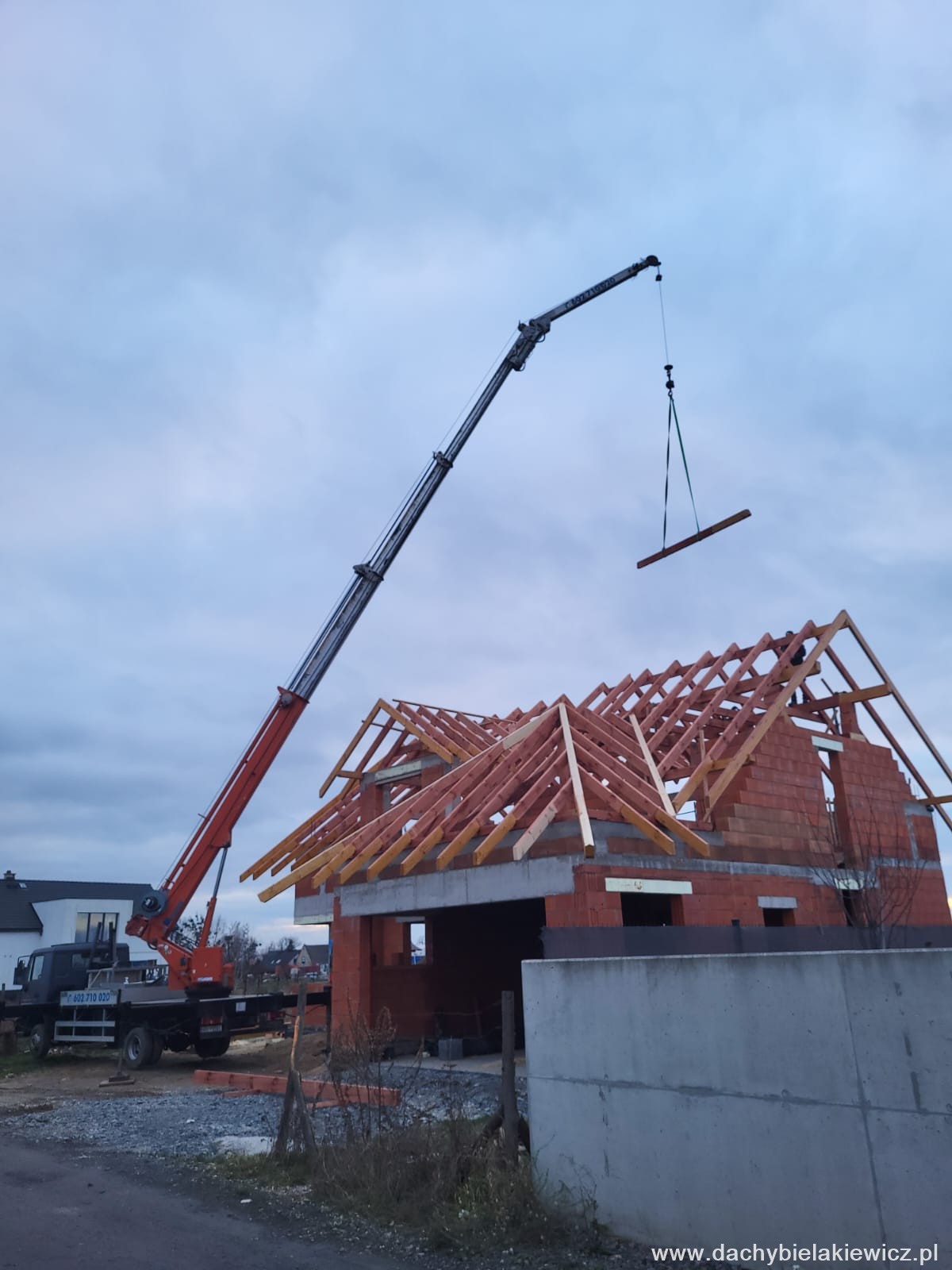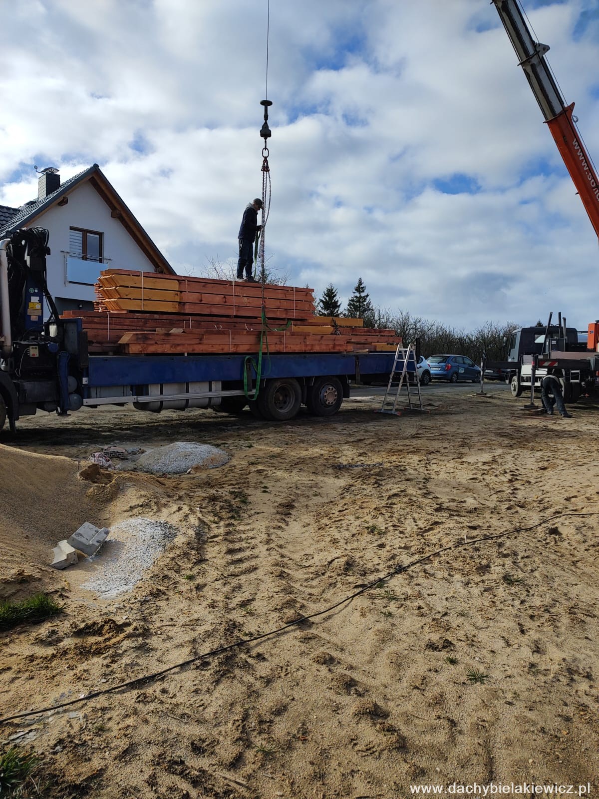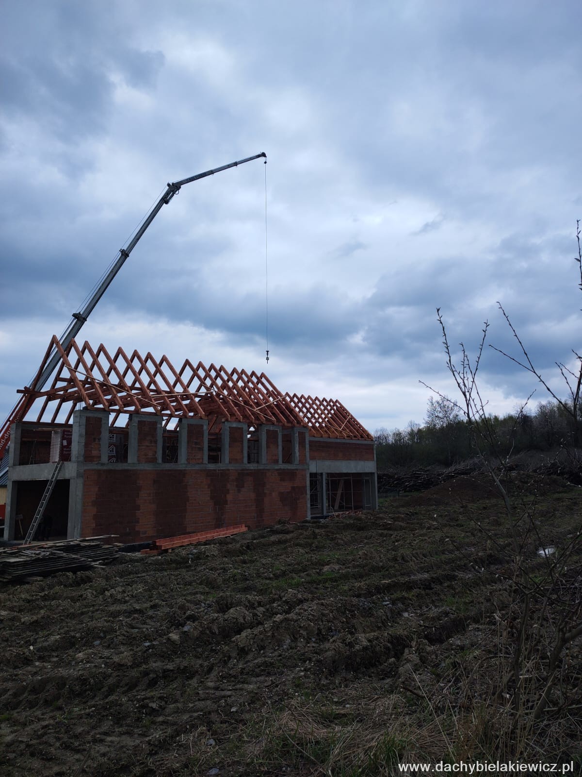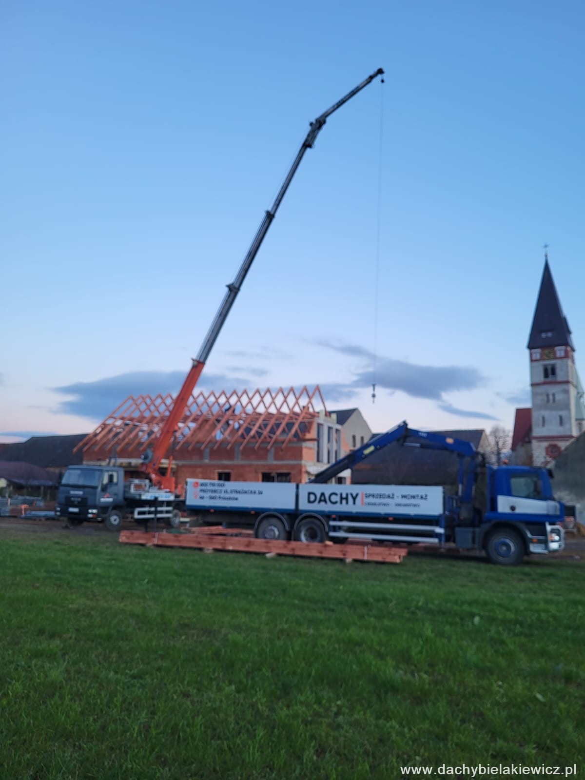 - montaż za pomocą dźwigu ciesielskiego o zasięgu 32m