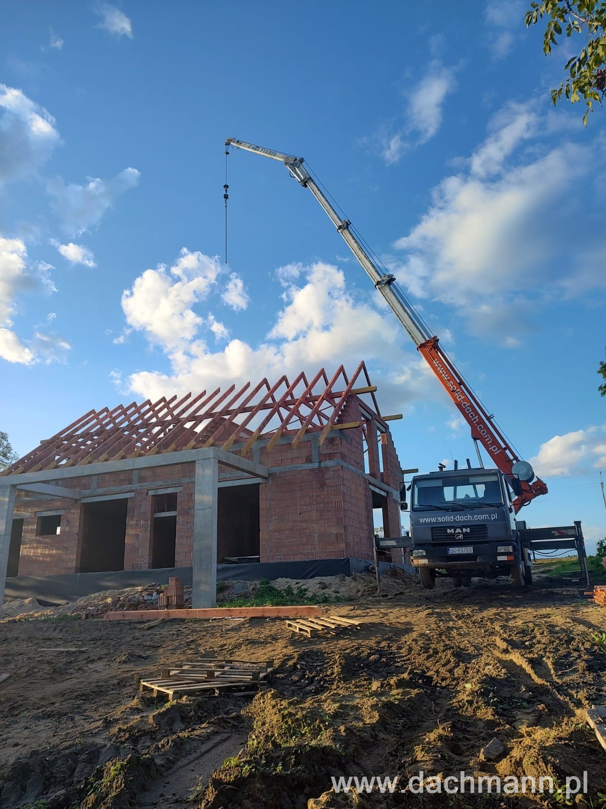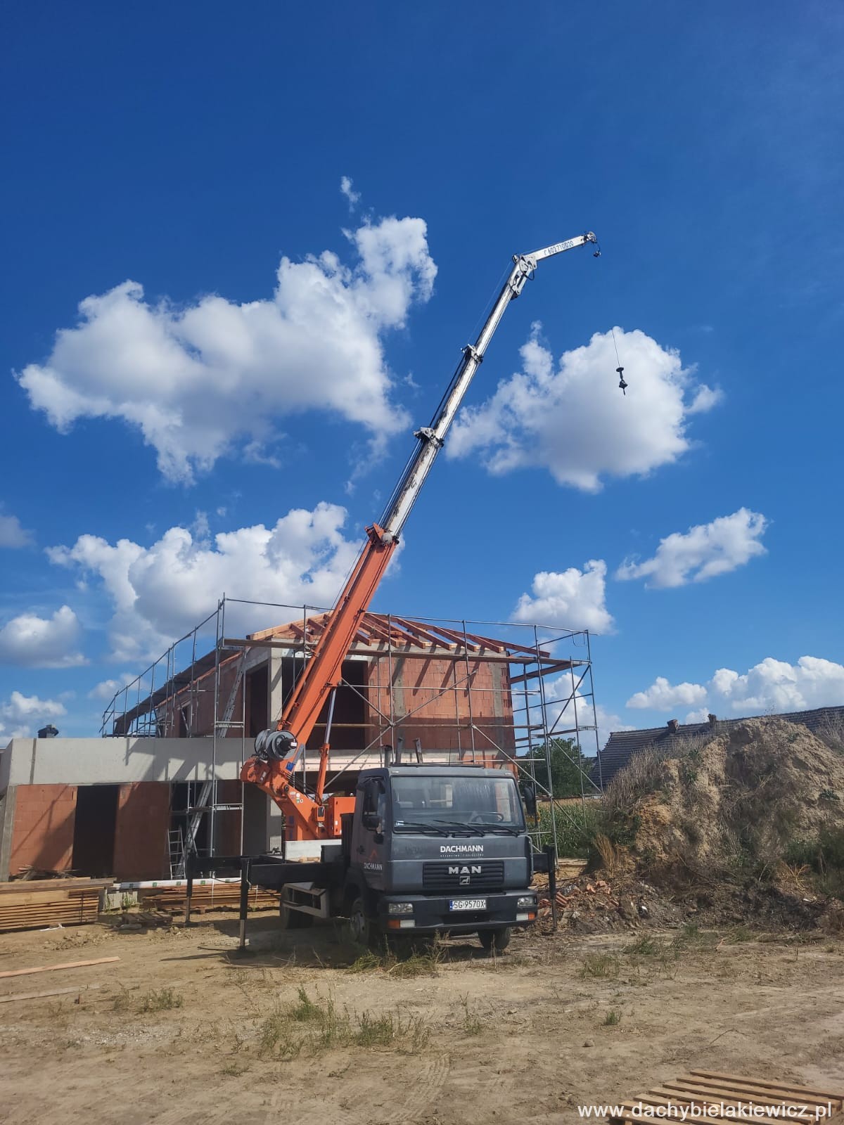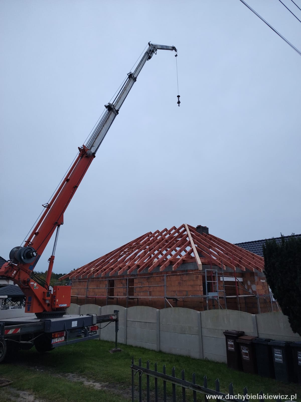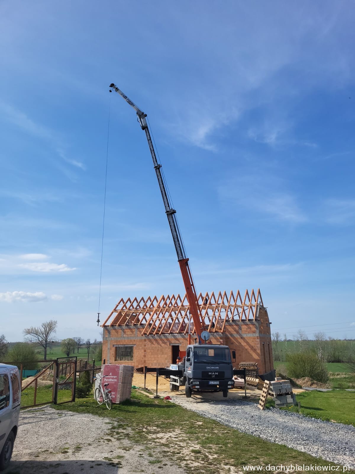 - montaż za pomocą dźwigu ciesielskiego o zasięgu 32m