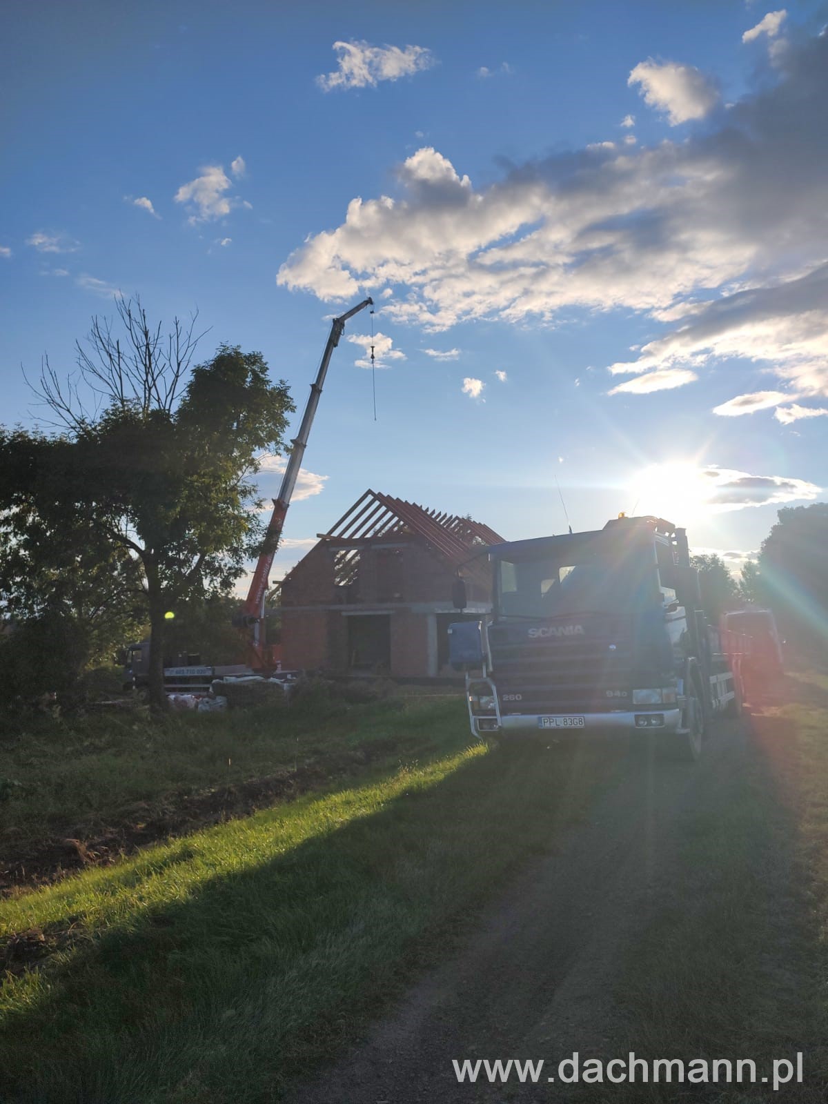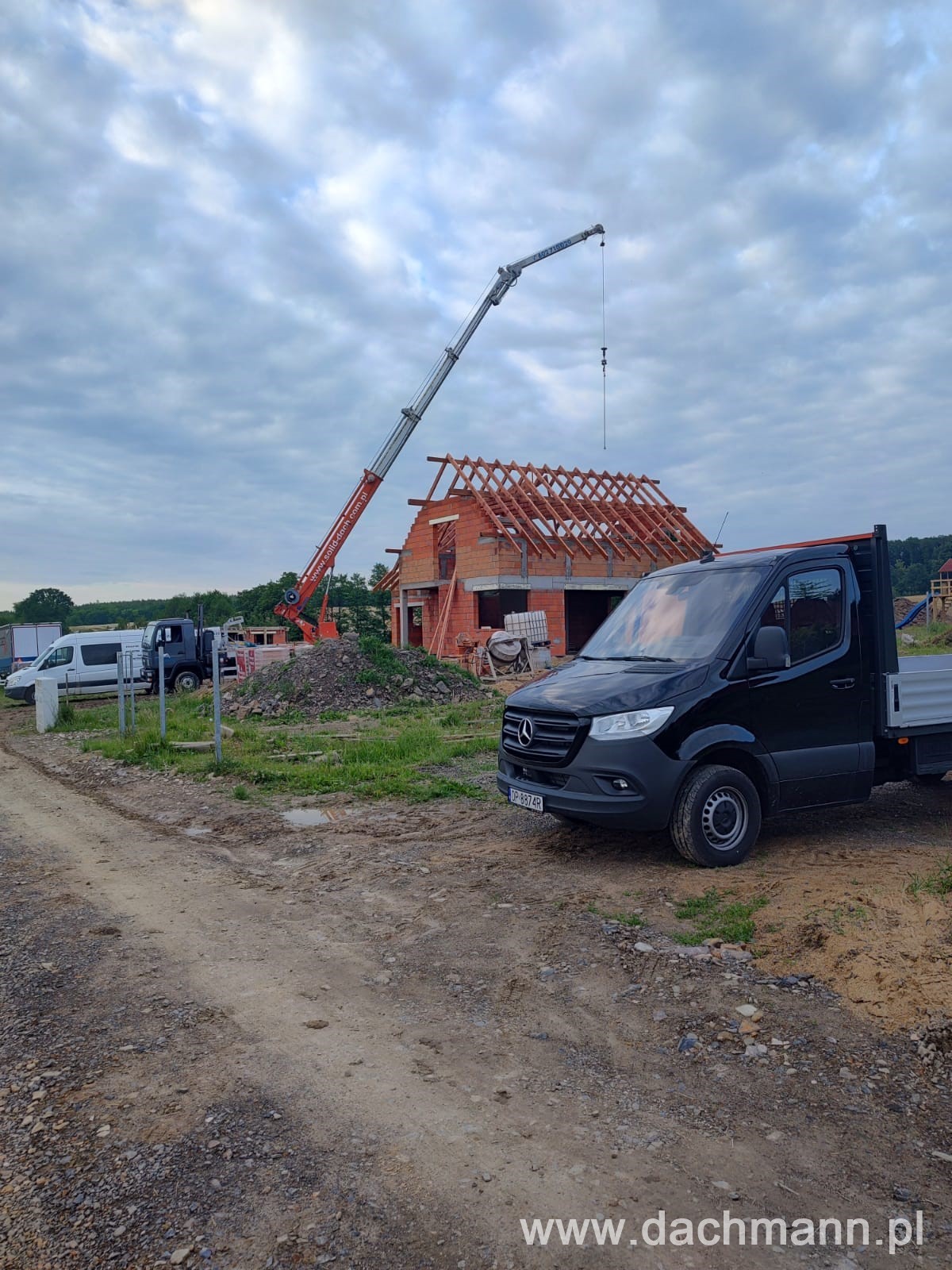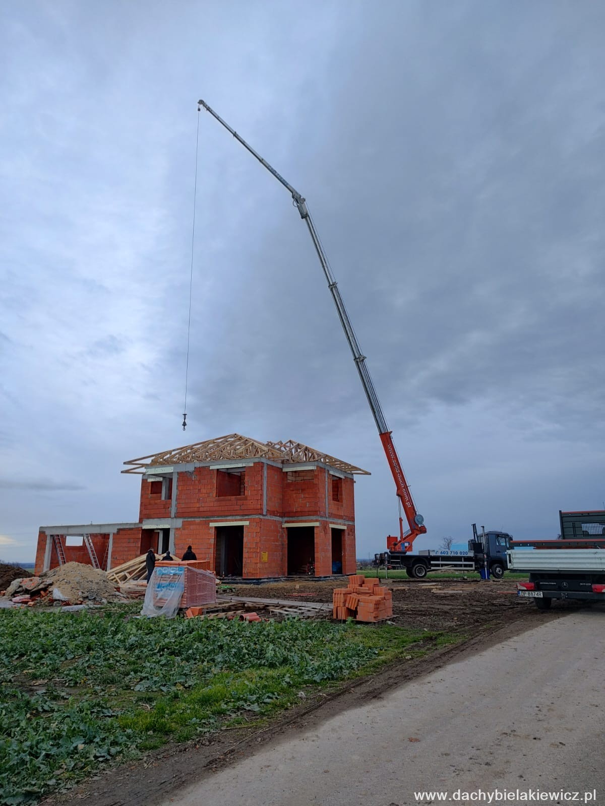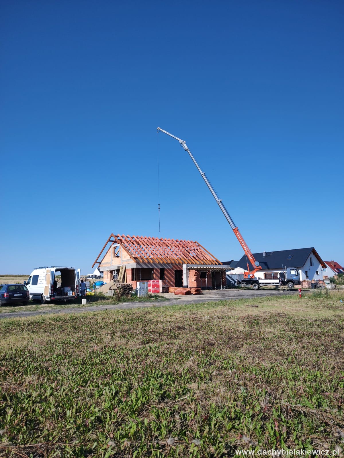 - montaż za pomocą dźwigu ciesielskiego o zasięgu 32m