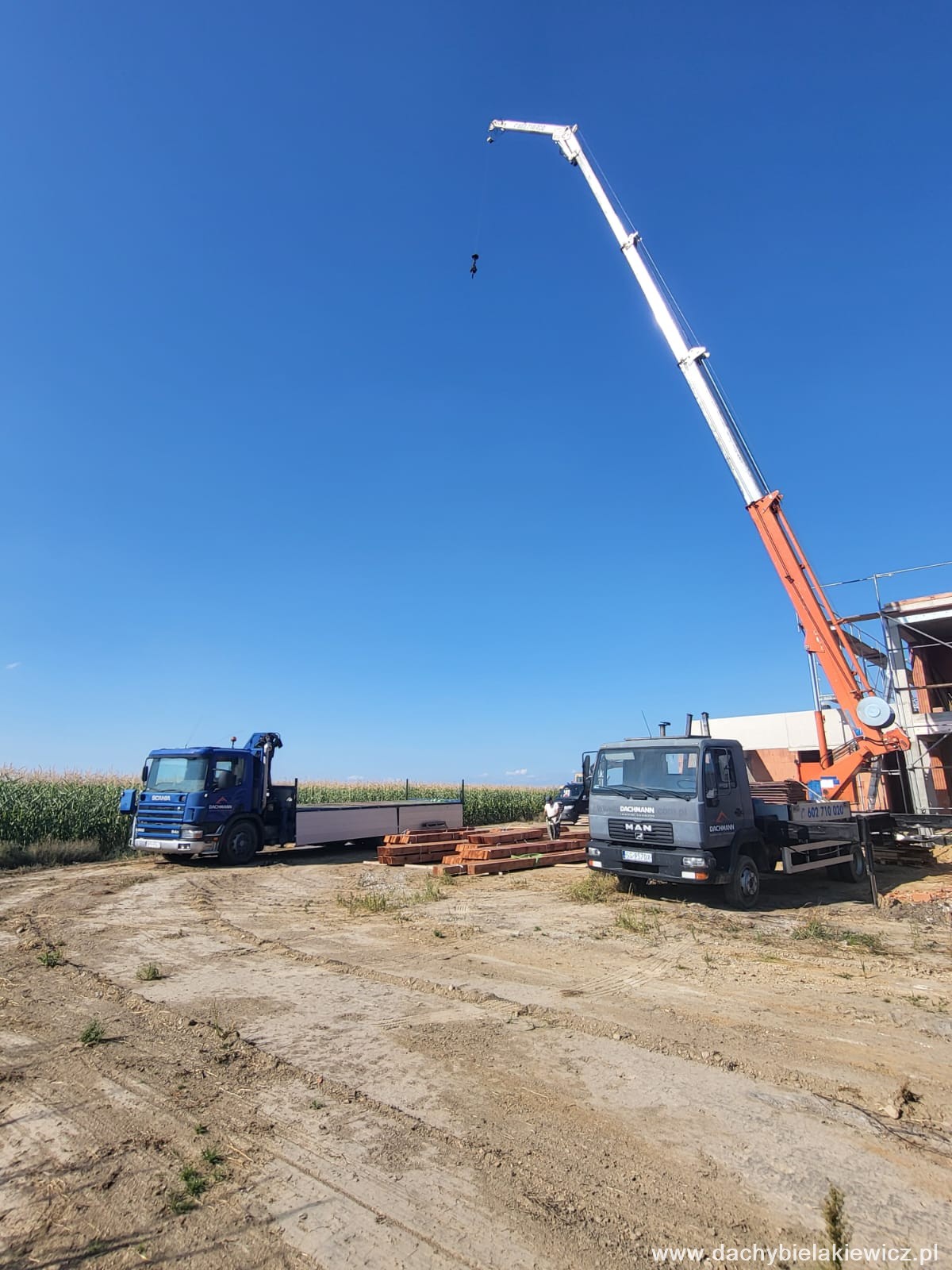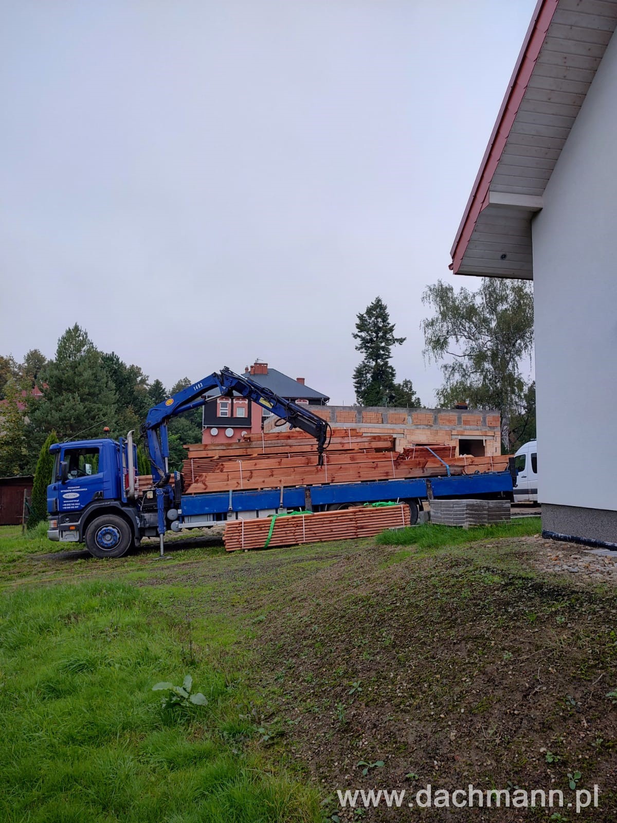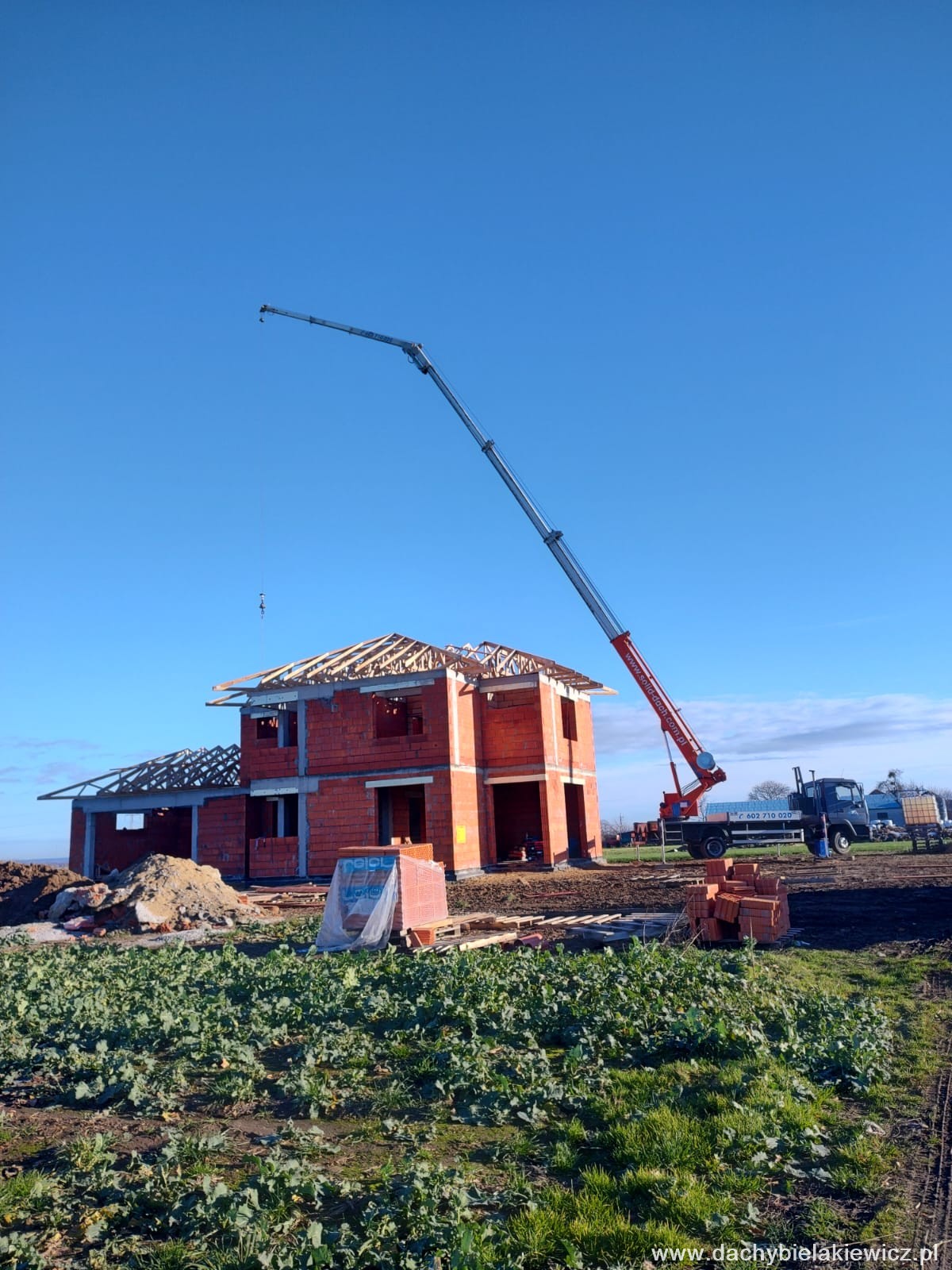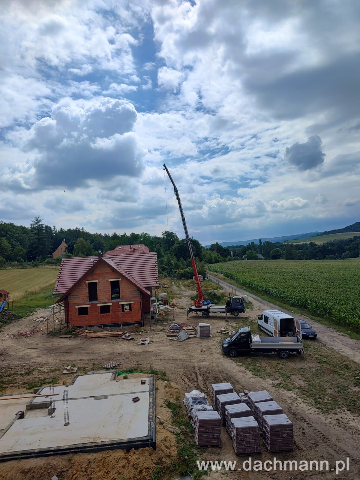 - montaż za pomocą dźwigu ciesielskiego o zasięgu 32m